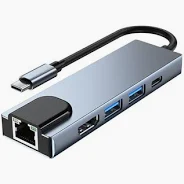 Adaptador de tipo C a HDMI, VGA y LAN Cat 6
